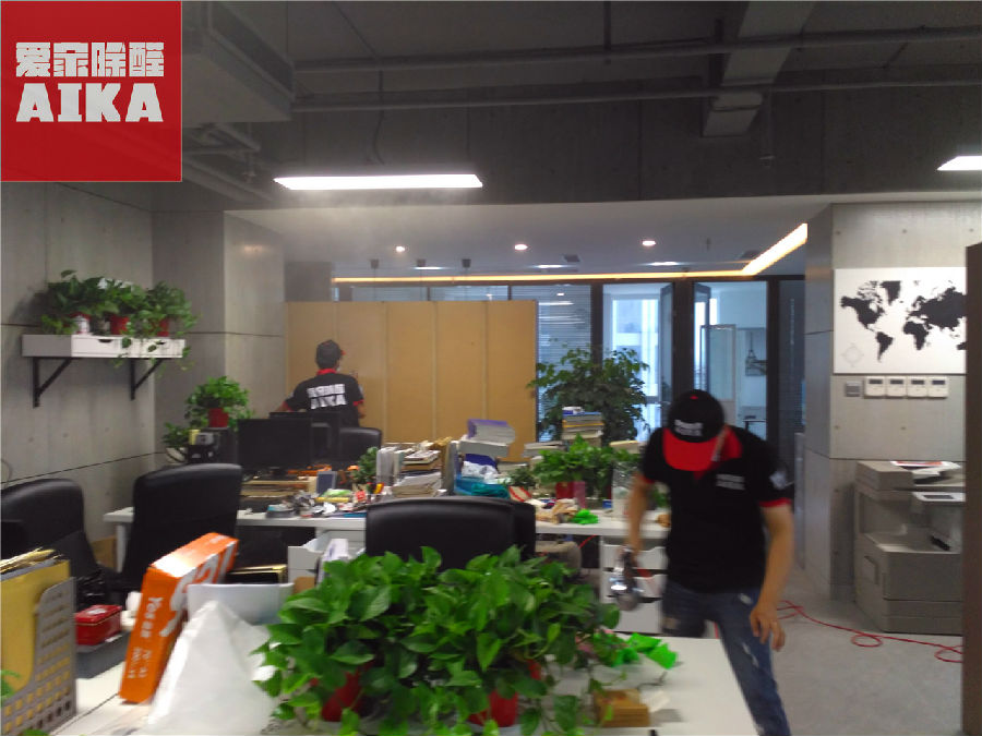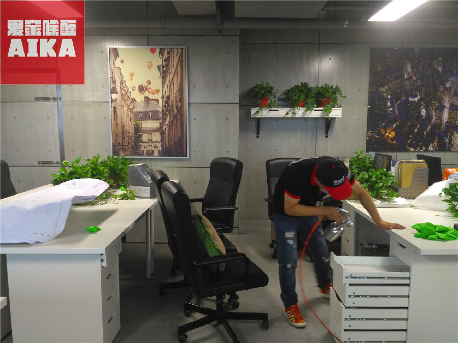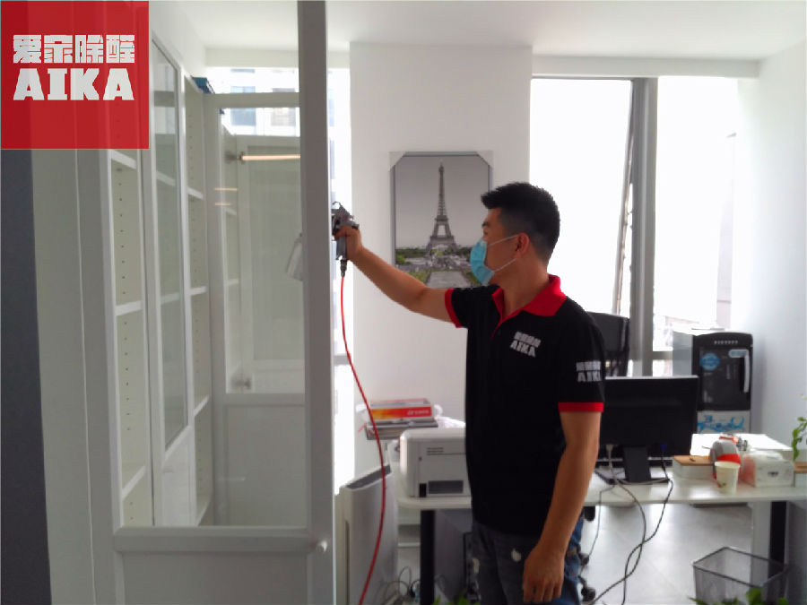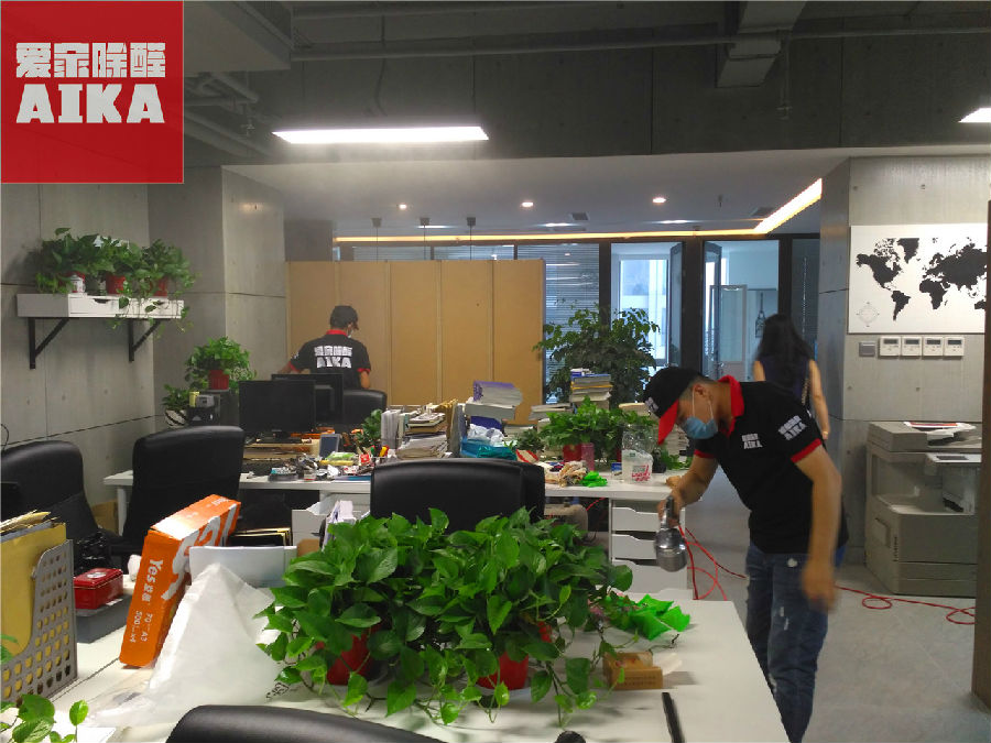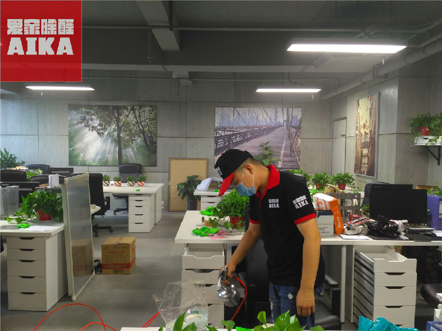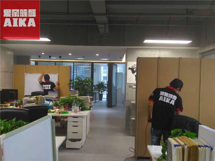 近日,我们爱家除醛为起航时代广场某办公室除甲醛。该公司非常注重环保,整体采用环保材料装饰装潢,为了更加优化公司员工办公环境,公司决定邀请我们爱家除醛为其办公室做整体除醛处理。
