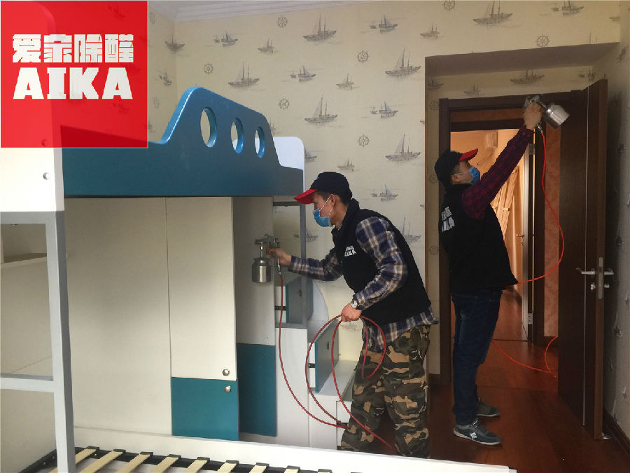 近日,我们爱家除醛为万科城家装除甲醛。业主在16年的夏天邀请我们爱家除醛为她家的房子做过检测,当时几个房子都属于轻微超标范围之内,由于当时业主不着急入住,想着房子晾晒一个夏天在经过一个冬天,期间长期通风除甲醛,应该没有什么问题了。但是今年刚刚过完年,业主又联系到我们爱家除醛想让我们为他家的房子做除甲醛。主要原因是房间里味道还是大的很。待在屋子里十几分钟,就感觉头晕恶心。鼻子非常刺鼻。她说,看来单纯的靠通风去除甲醛还是不太靠谱。于是我们为业主做了整体除甲醛。确保业主能正常健康安全入住。