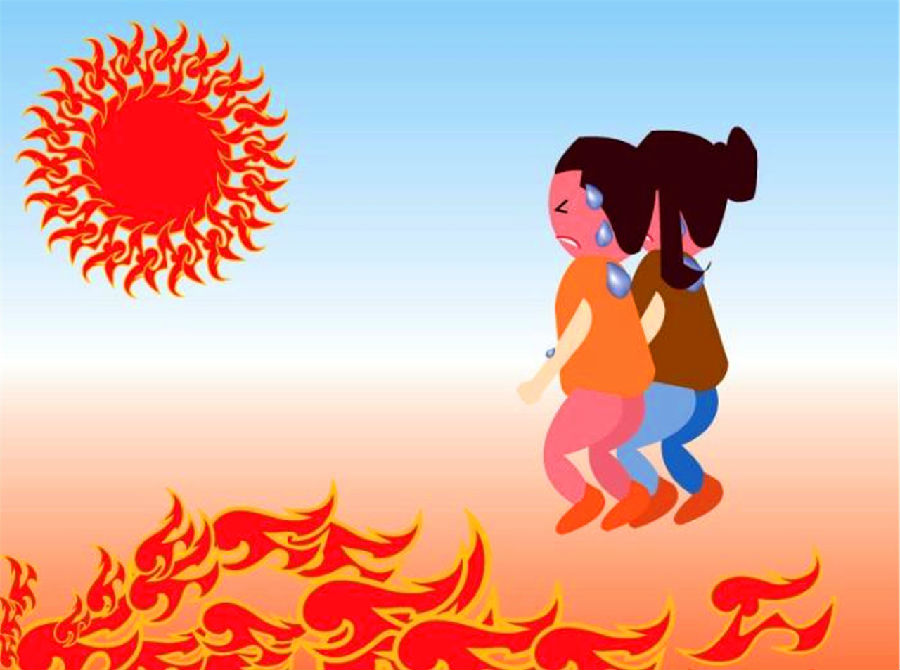 夏天的太阳犹如一颗大火球,熊熊燃烧着,它不断地向大地倾泻着过量的光与热。整个大地似乎要燃烧起来了,变得火辣辣的。