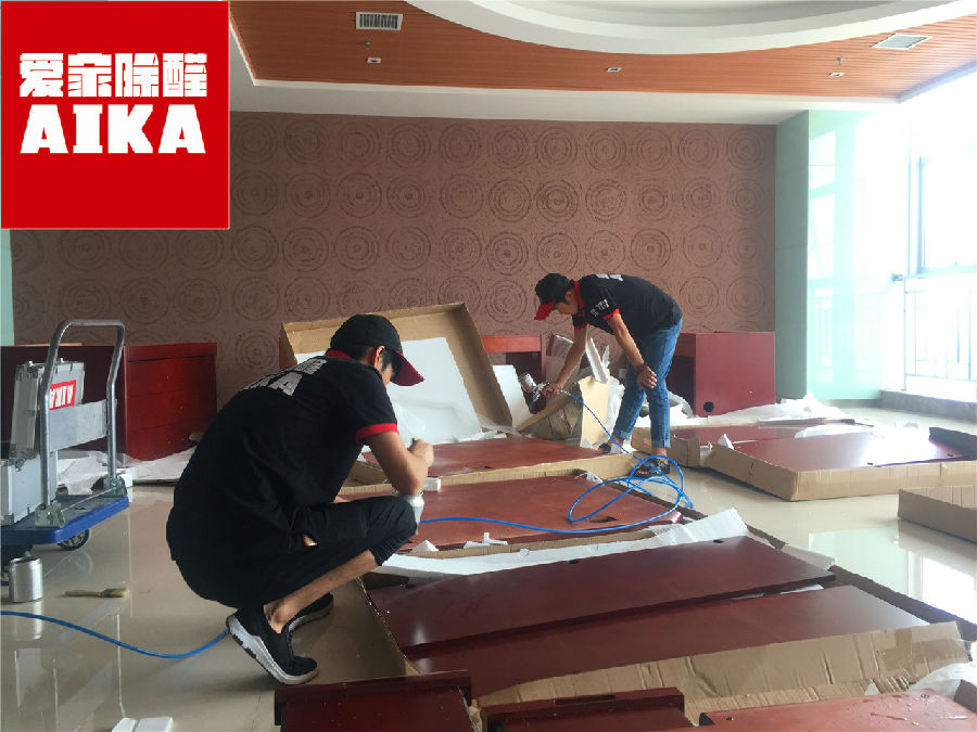 我们工作人员到现场查看后提出在家具未拼装前就进行甲醛治理,对所有污染源进行专项治理,对污染源会发点进行封堵(铆钉处等)堵住有害气体的流通孔及流通缝隙,达到降低污染空气挥发量的治理方案。