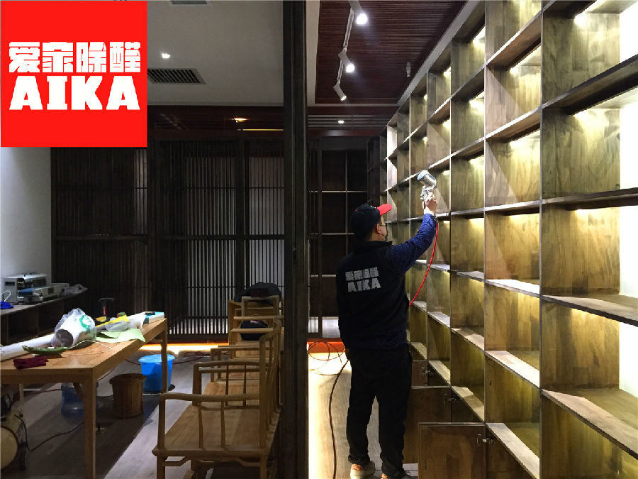 西北国际茶城臻字号店近日装修一新,由于现场用了很多的木制家具,所以现场味道非常的大,茶店老板非常注重环保,为了能够在开业的时候给客户提供一个非常惬意的品茶环境,所以特邀我们爱家除醛为其茶店进行专业室内除甲醛。